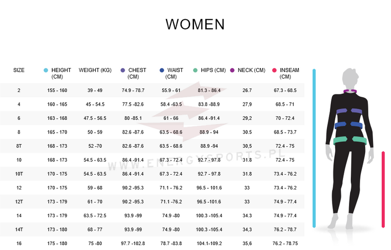 - Damska letnia pianka z długimi nogawkami z kolekcji Rise 1,5 mm z zamkiem błyskawicznym z przodu.