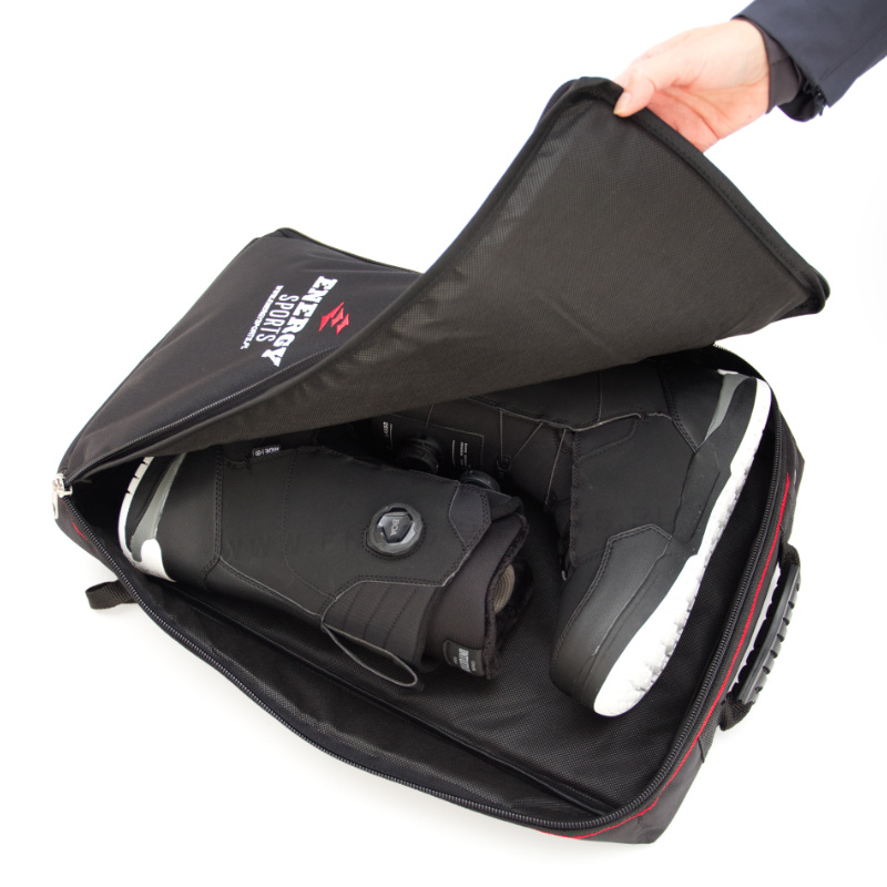 - Pojemna komora główna – zmieści parę butów narciarskich lub snowboardowych, chroniąc je przed uszkodzeniem i zabrudzeniem.