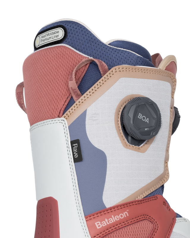 Buty snowboardowe Bataleon Rave Women’s powstały z myślą o riderkach, które oczekują komfortu, kontroli i wszechstronności w każdym terenie. Sprawdzą się zarówno na przygotowanych trasach, jak i w parkowych warunkach lub w lekkim puchu. Dzięki systemowi Dual BOA® dopasowanie buta jest szybkie i dokładne, a termoformowalny liner pozwala dostroić wnętrze do anatomii stopy. Elastyczny flex zapewnia naturalne ruchy, natomiast podeszwa SureGrip dostarcza stabilności i przyczepności na różnych nawierzchniach.